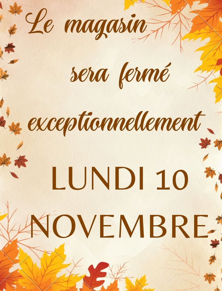 🍂Le magasin sera exceptionnellement fermé lundi 10 novembre🍁Nous vous retrouverons…